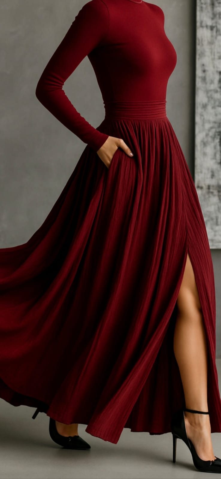• Elegant pleated maxi skirt – Beautiful flow and movement with every step